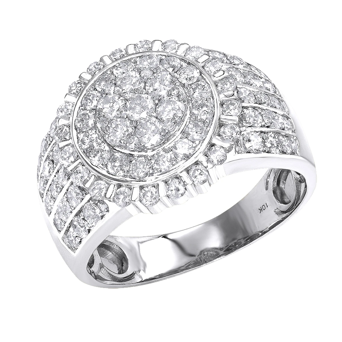 Luxurman Men’s Rings! This Solid 10K Gold Diamond Ring for Men by Luxurman weights approximately 8 grams and showcases fully iced out design with 2.5 carats of sparkling round cut diamonds masterfully pave set in luxurious 10K gold frame. This beautiful men’s diamond ring also makes a perfect pinky ring featuring a versatile design and a highly polished gold finish, this men’s diamond ring is available in 10K white, yellow and rose gold.