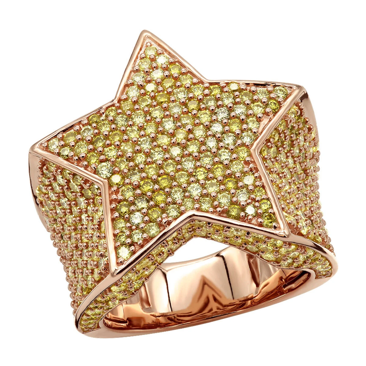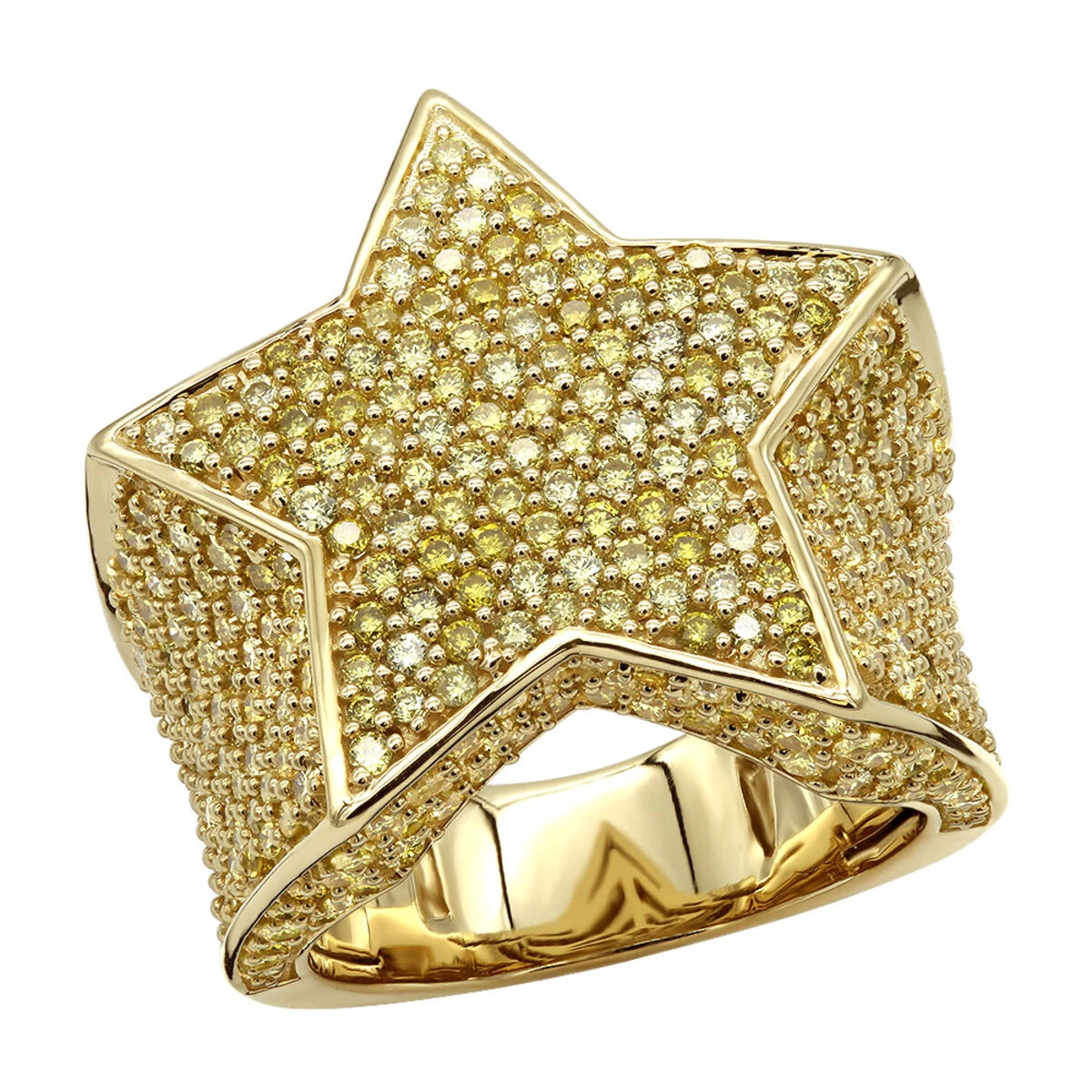 Statement Men’s 14K Yellow Gold 4 Carat Yellow Diamonds Star Pinky Ring