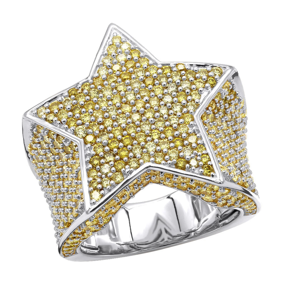 Unique Men’s Pinky Collection: This Diamond Ring for Men by LUXURMAN features the latest in hip hop jewelry ring style of a five-pointed star fully iced out with 4 carats of sparkling round yellow diamonds. The ring is showcasing a star look carved in 14K highly polished precious gold band with diamonds going to the sides of the ring as well. Star ring nowadays is the most fashionable item for many hip-hop stars, this ring is huge and is sure to stand out at 29/32in. (23mm) wide. This unique men’s diamond ring will make an amazing present and is available in 14k yellow gold, rose gold and white gold. We can also custom make this ring with white diamonds or any other color diamonds, contact us for more information if you would like to customize it.