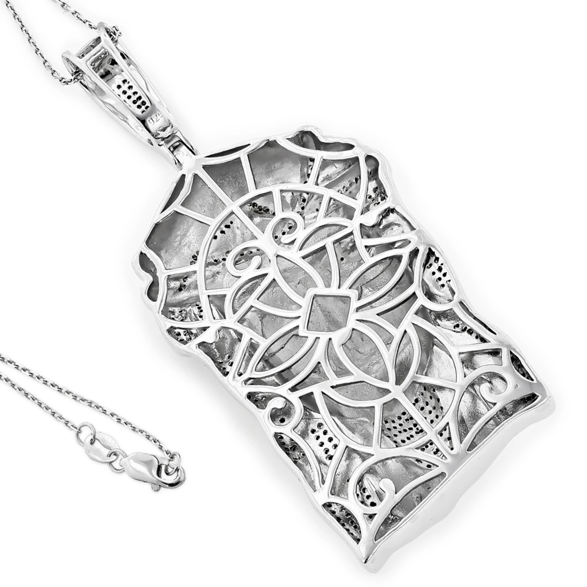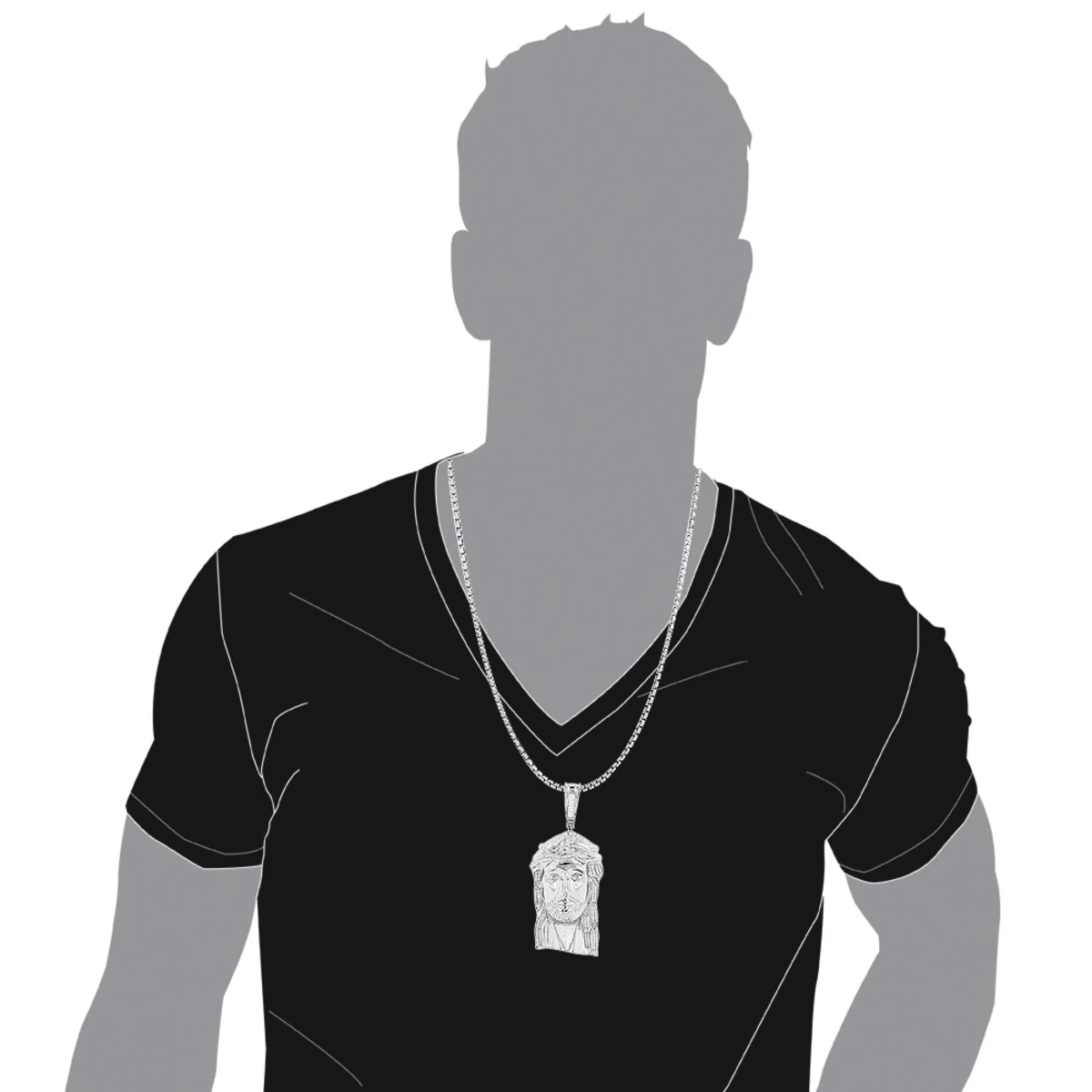 This Sterling Silver Diamond Jesus Face Pendant weighs approximately 29 grams showcases 0.84 carats of genuine diamonds. Featuring an intricate 3-D design and a luxurious rhodium plating for extra shine, this diamond pendant is a trendy diamond jewelry piece. You also can personalize this piece or check we’ve already made and create your own design.