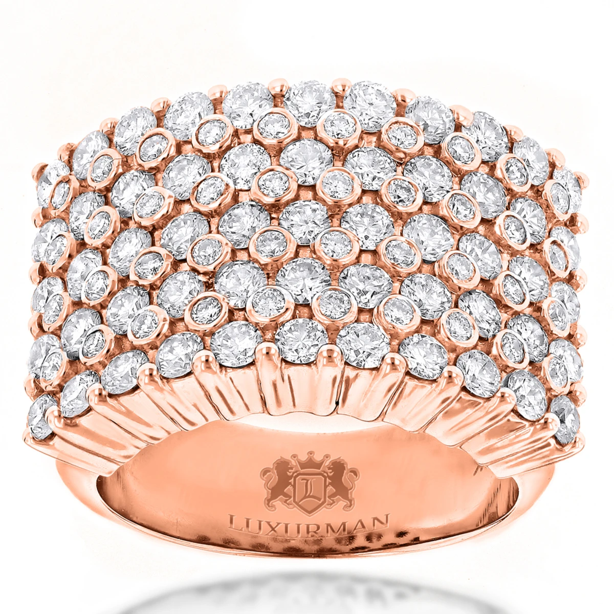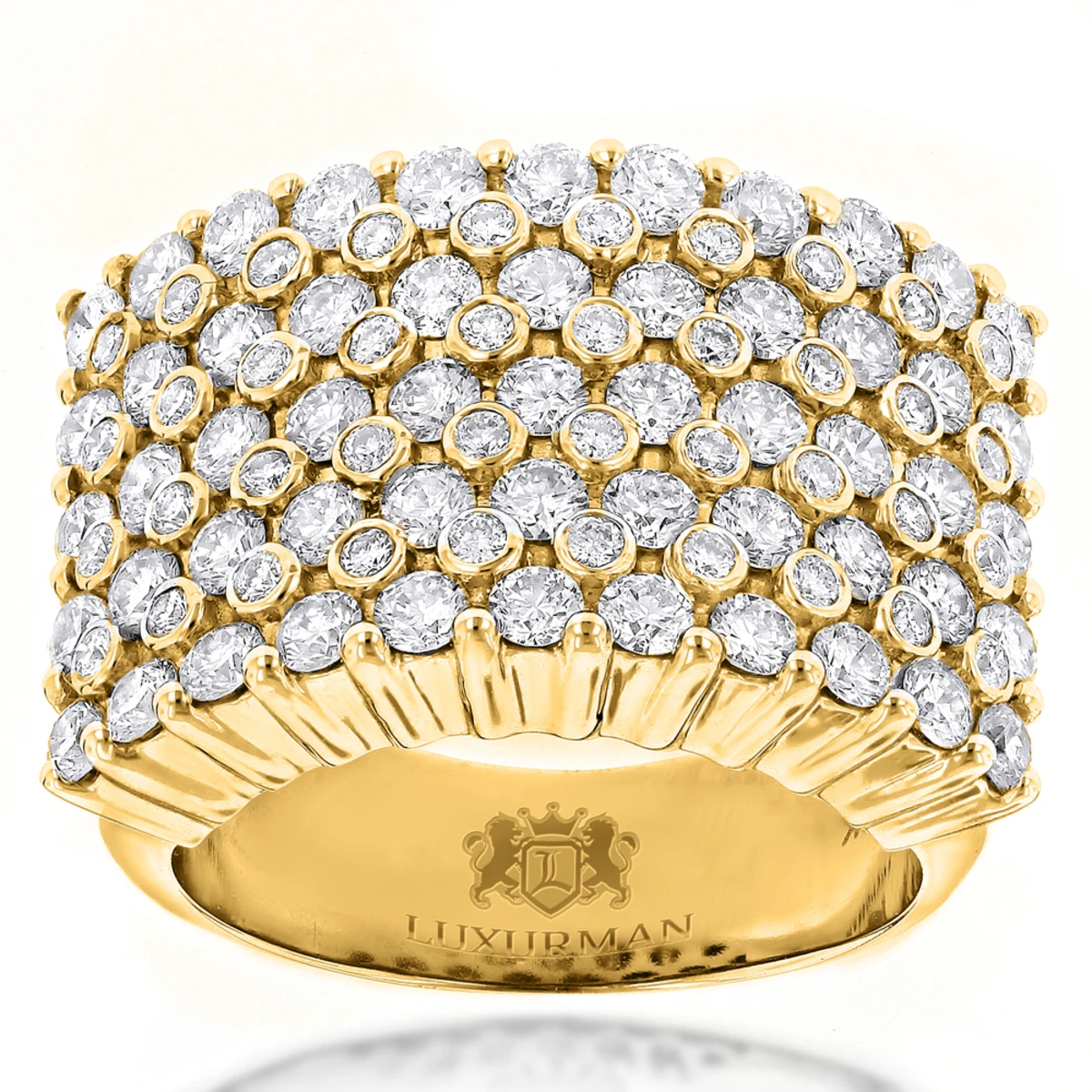 This unique 14K Gold Men’s Diamond Rings Collection Piece by Luxurman showcases 3 1/2 carats of sparkling round diamonds, each expertly prong set or bezel set in a highly polished gold frame. Featuring a fine gallery back, this luxurious, wide men’s diamond ring is available in 14K white, yellow and rose gold.