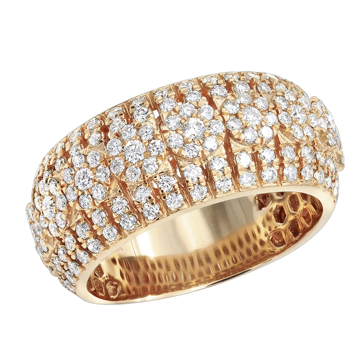LUXURMAN Men’s Diamond Rings Collection: presenting a very unique diamond band for men, done in solid 14k gold this amazing designer ring features unique cuts in the gold decorated with round pave set and cluster set diamonds adding to its uniqueness and appeal. This very unique men’s diamond wedding ring can be ordered in 14k yellow gold, white gold and rose gold, comes in a very nice gift box.
