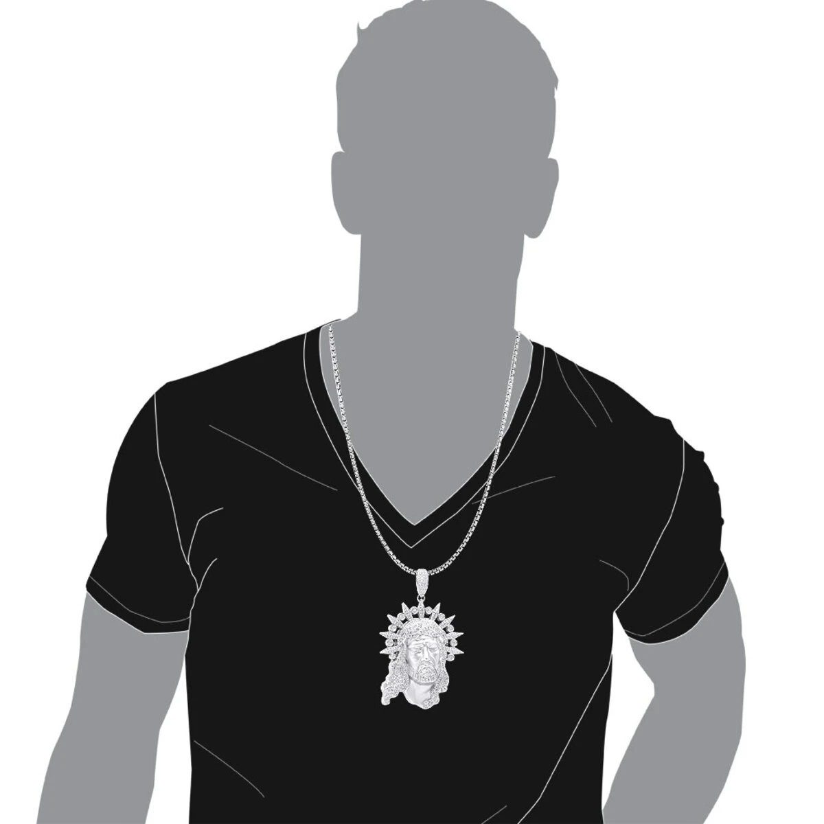 Unique Hip Hop Large Diamond 14K White Gold Jesus Head Pendant