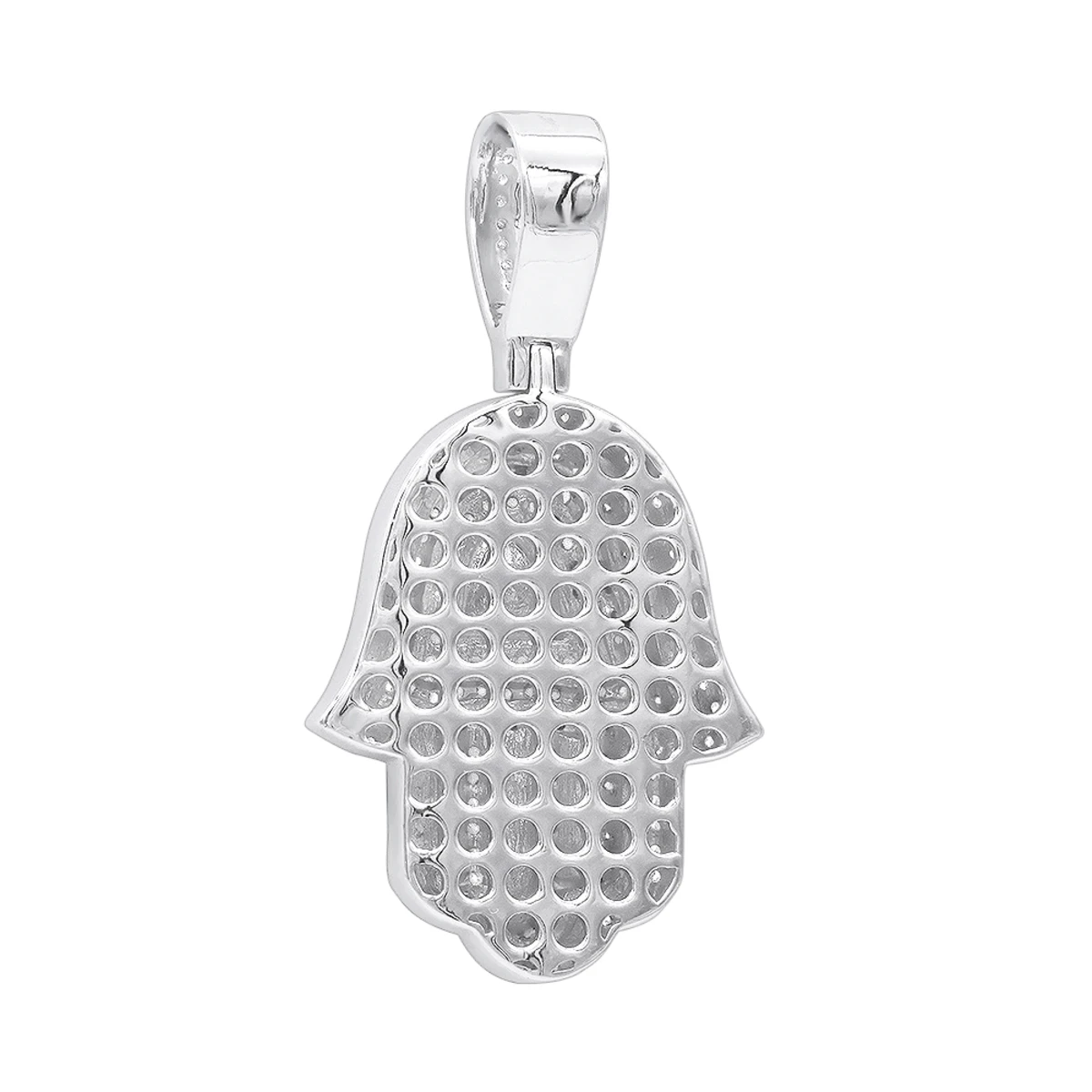 Jewish Jewelry collection: This unique 104 Gold Diamond Hamsa pendant also called Hamsa Hand pendant showcases 2 carats of sparkling round diamonds set in solid 14k gold setting and decorated with a red enamel giving it a very unique look, the bail of this pendant is fully paved in sparkling diamonds as well. The Hamsa Hand is an ancient Middle Eastern amulet symbolizing the Hand of God. In all faiths it is a protective sign. It brings its owner happiness, luck, health, and good fortune. The hamsa hand has a wide variety of different spellings which includes hamesh, hamsa, chamsa, and khamsa. Featuring an intricate design with a red enamel in the center, this fabulous diamond hamsa pendant is over an inch and a half long with bail: 1 13/16in. (46mm) and about an inch wide, available in 14K white, yellow and rose gold. You also can personalize this piece or check we’ve already made and create your own design.