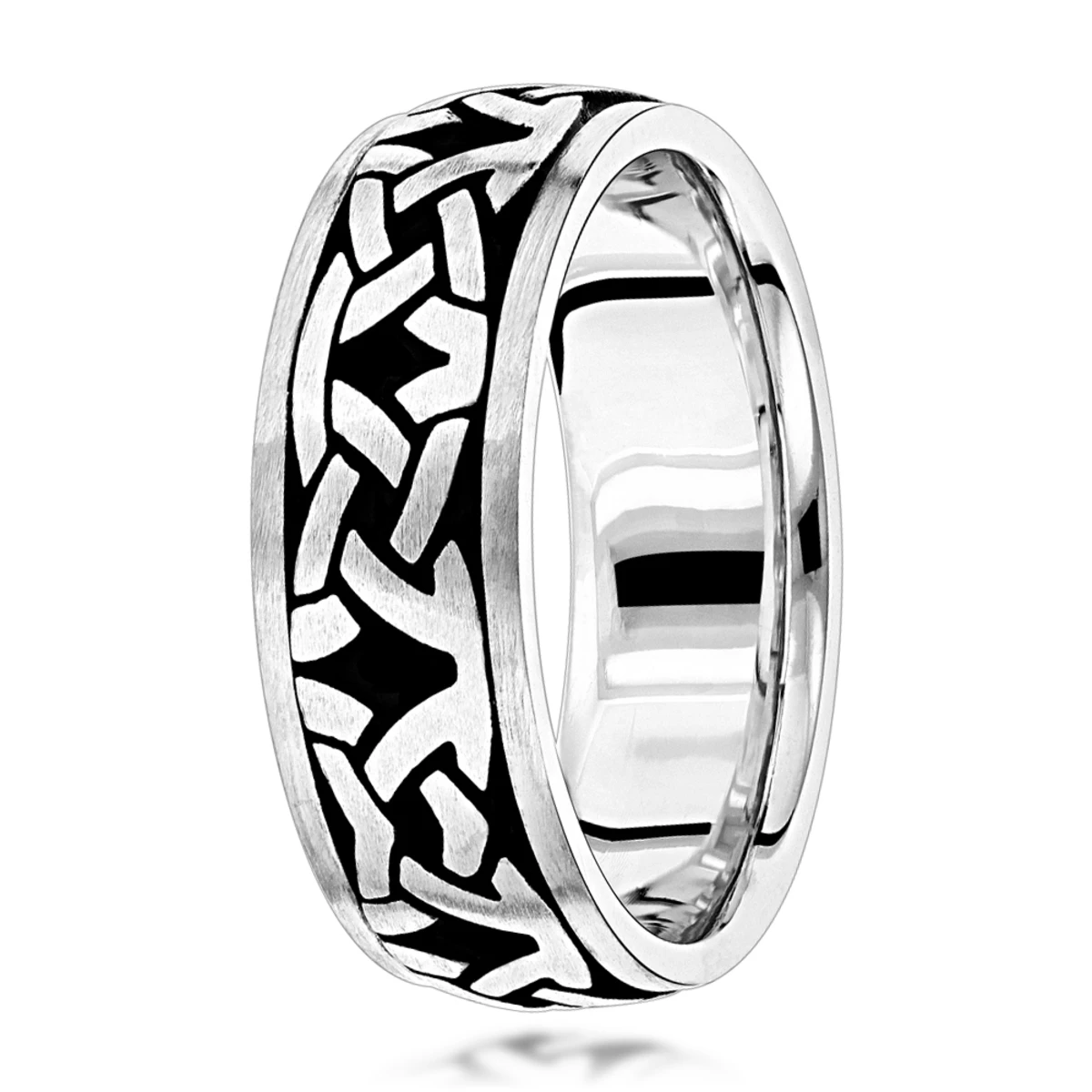 Be the first to review “Unique Solid 14K White Gold Black Enamel Ornament Wedding Band For Men By Luxurman” Cancel reply